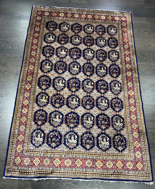 Qom Silk Rug with horses