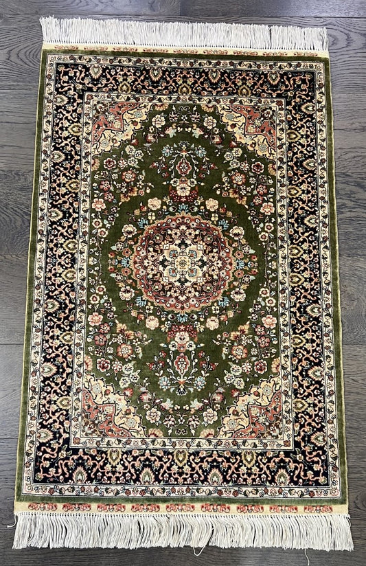 Green Field Turkish silk rug