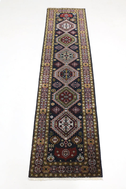 A runner is a long, narrow rug that is usually rectangular in shape. It is often handmade using traditional weaving techniques and can be made from a variety of natural fibers such as wool, cotton, silk, and jute. Runners are used to decorate or protect different areas of a home, such as stairwells, hallways, entryways, kitchens, bathrooms, or mudrooms, and add a touch of elegance and sophistication to any home .