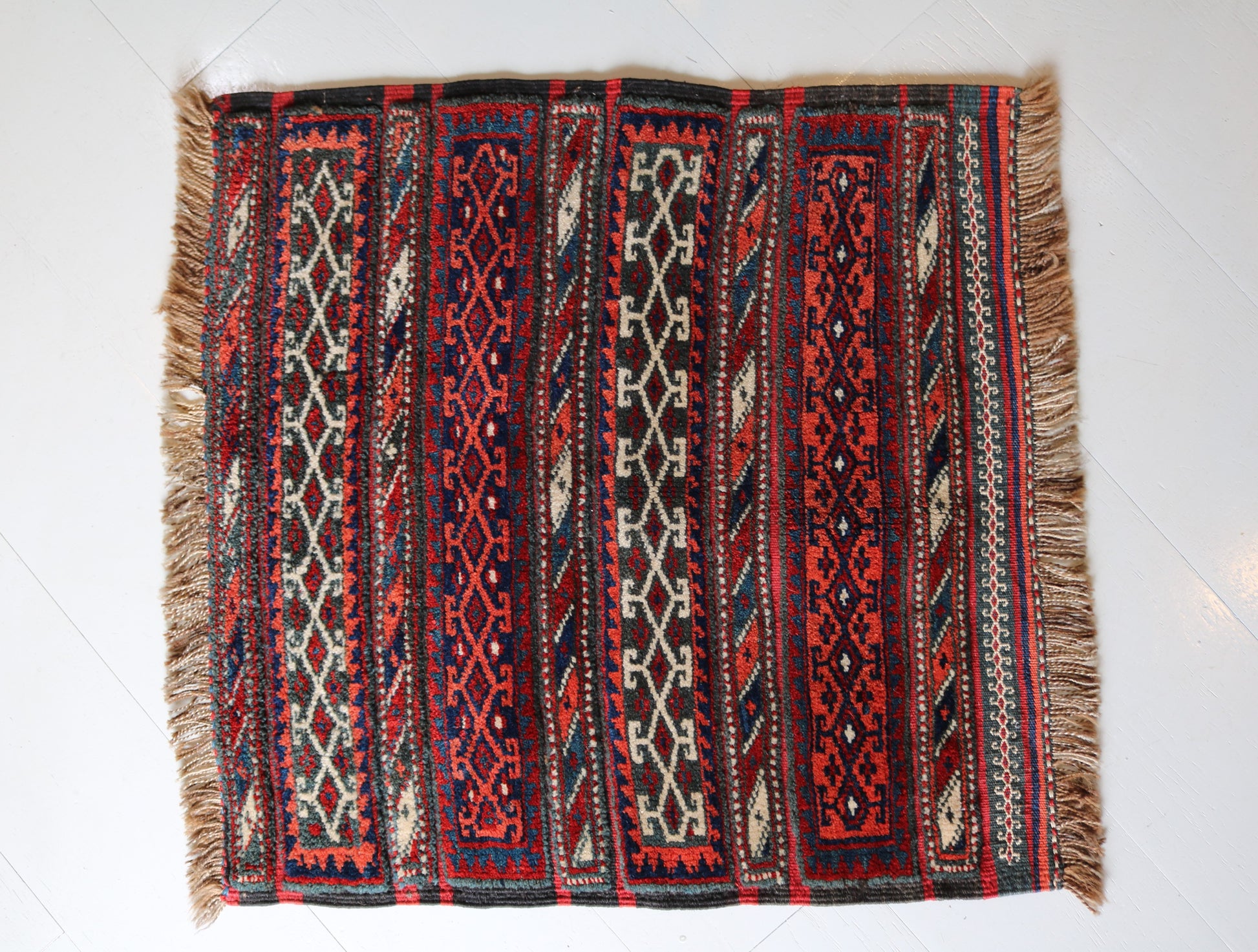 Persian Veramin. Ca. 1920 . Unusual alternation of high pile with Kilim. Overall excellent condition, the colours are contrasting and have preserved their vibrancy.  No sign of wear.