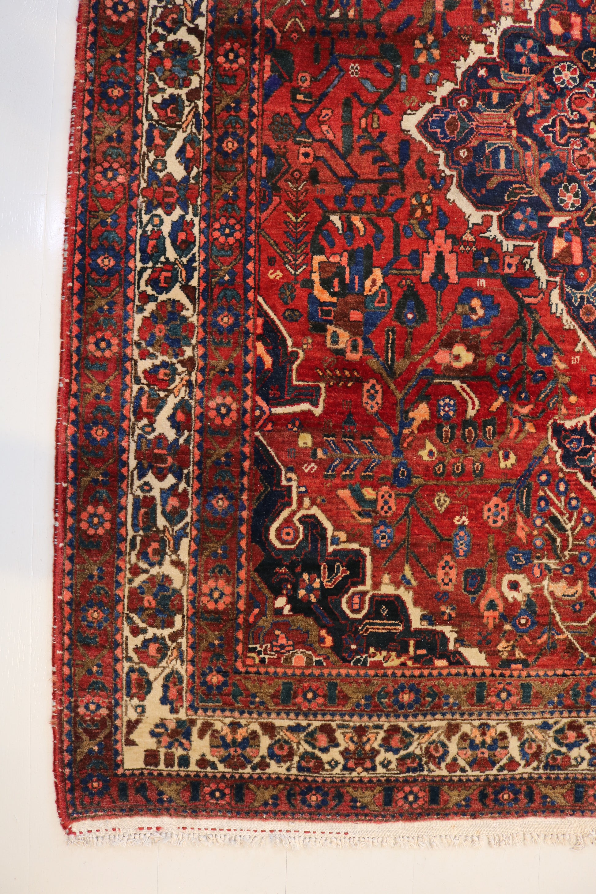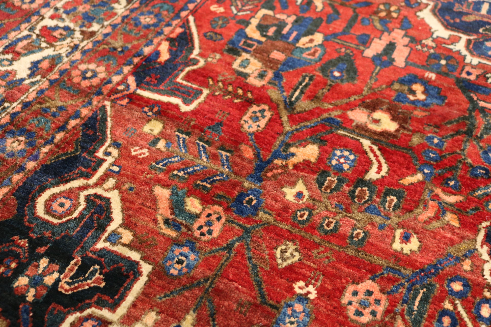 Antique Rug from the region of  Abadeh, with motifs inspired by the Qashqai people, the geometry of the foliage on the field is highly attractive on the red tones.