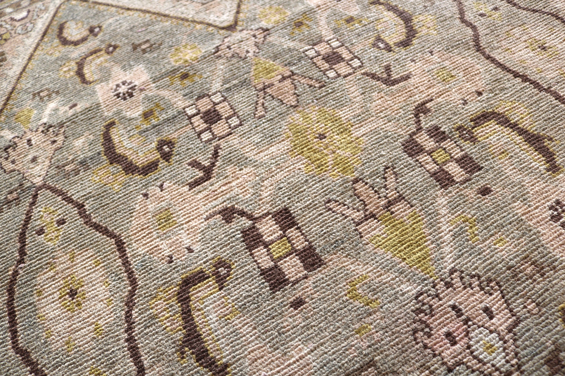 This Persian Malayer Circa 1940 has a great overall light appearance with a beautiful combination of cold tones such as greens and blues surrounded by warm pinks and light browns that would suit any style of decoration.